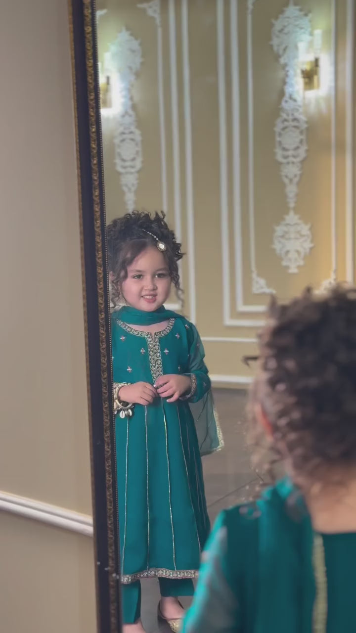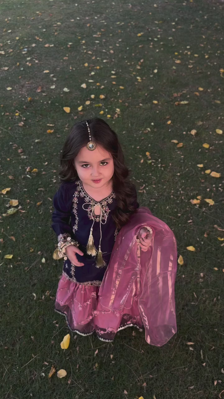 3 Piece Chiffon Embroidered Gharara