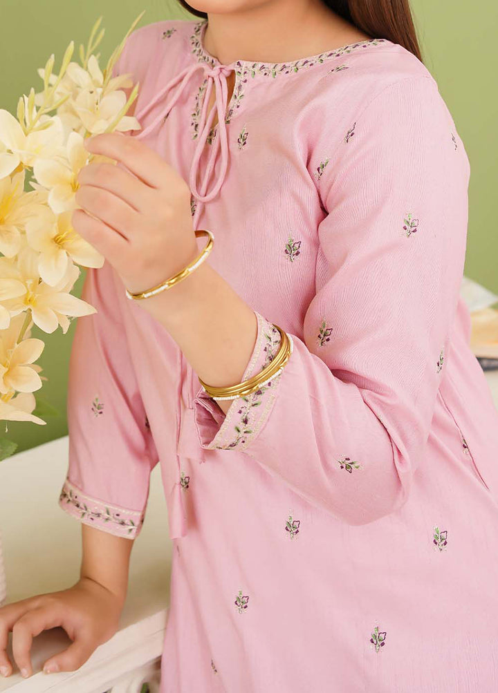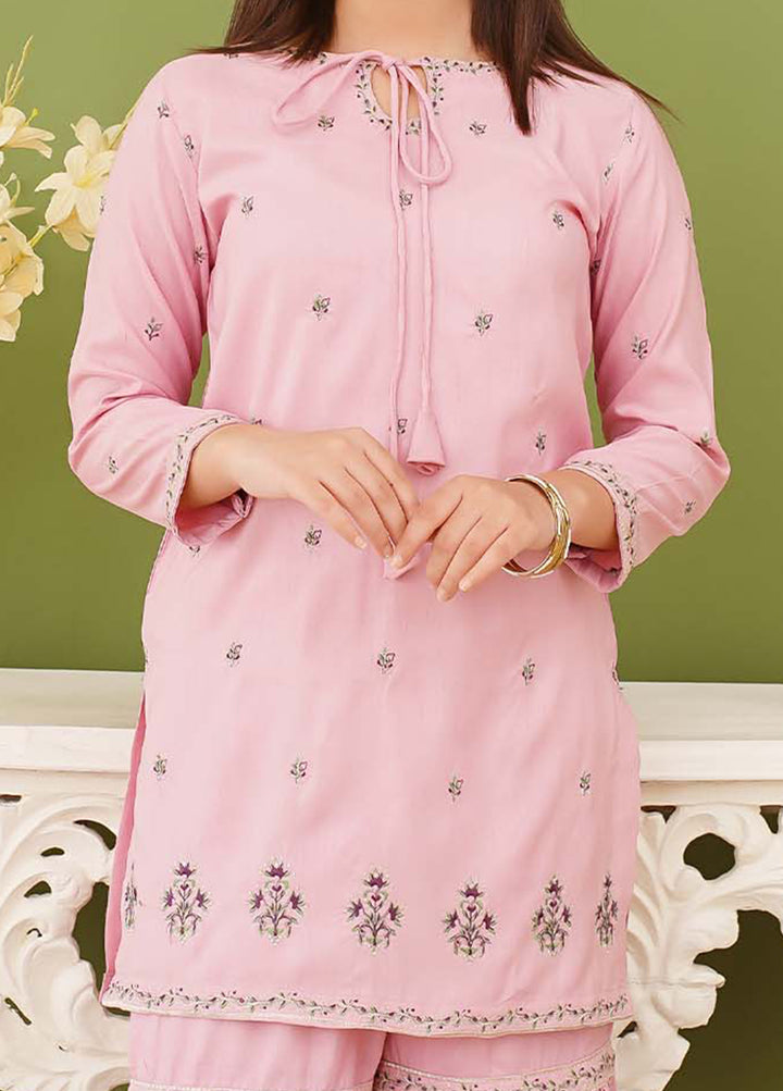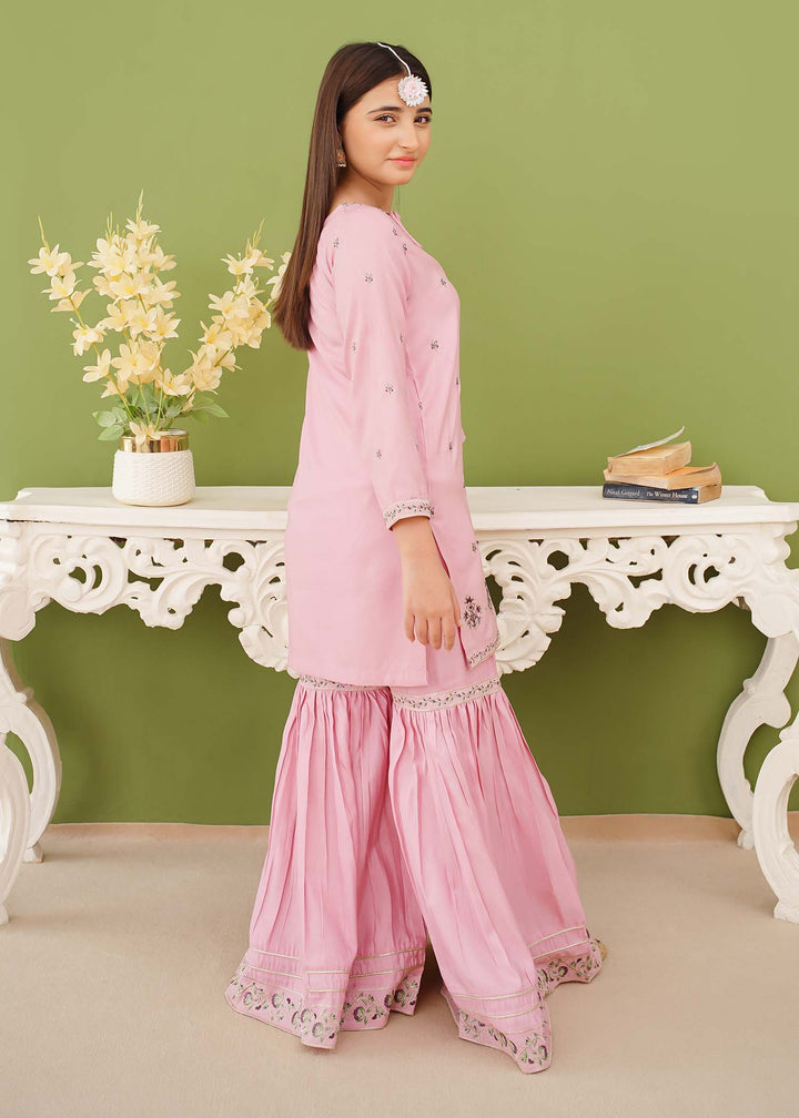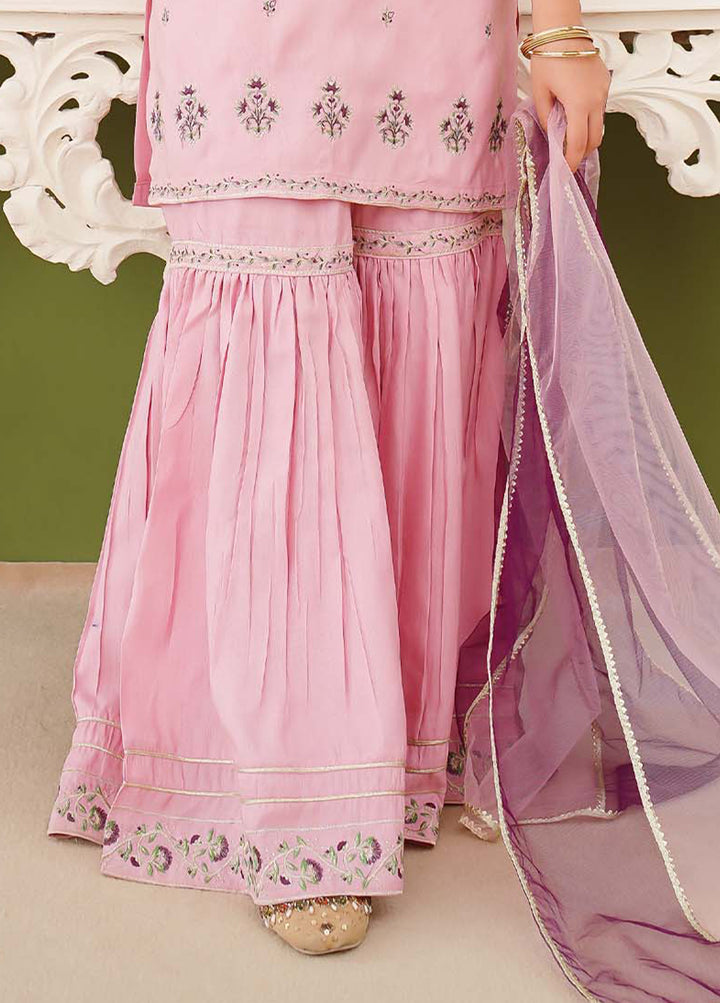 3 Piece Rawsilk Embroidered Pink Gharara